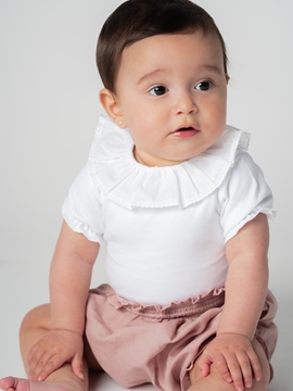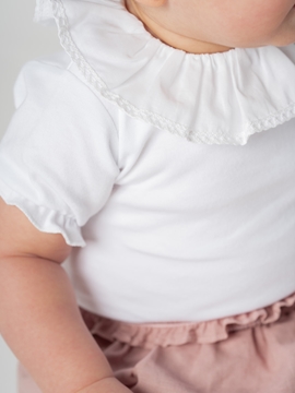 Short sleeve bodysuit with piqué Peter Pan collar with white stitch
