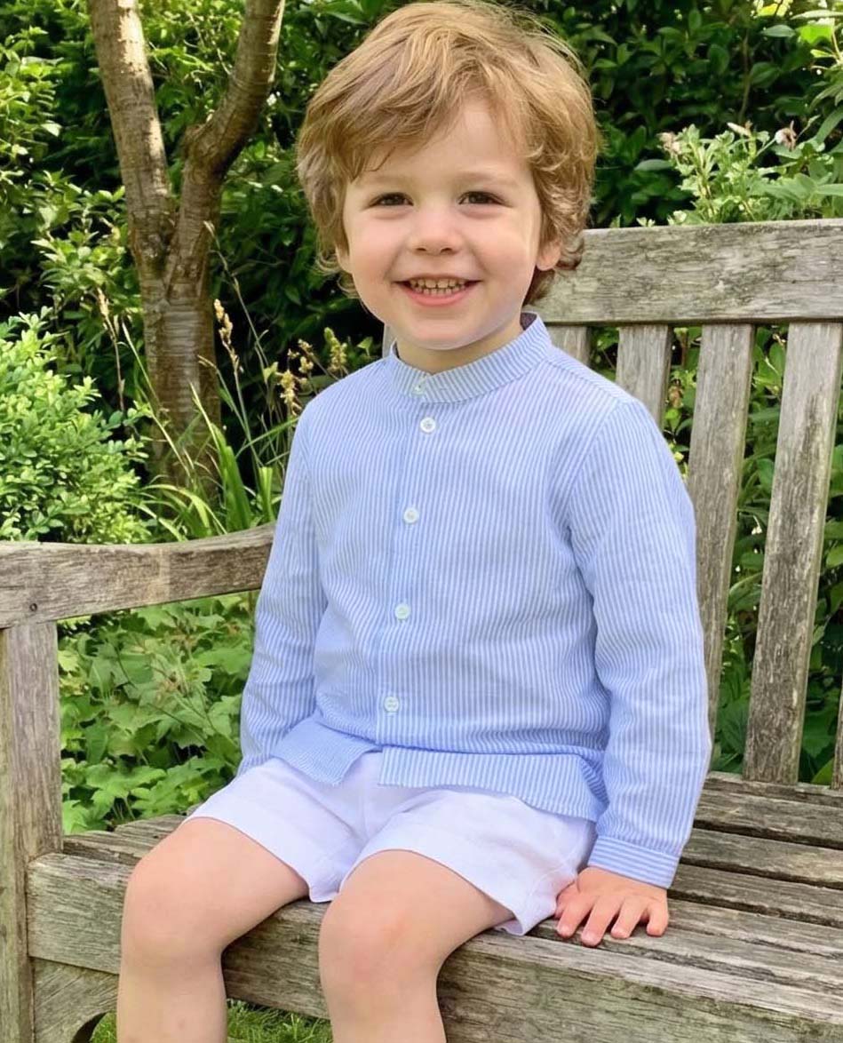 Mao collar shirt in blue stripes