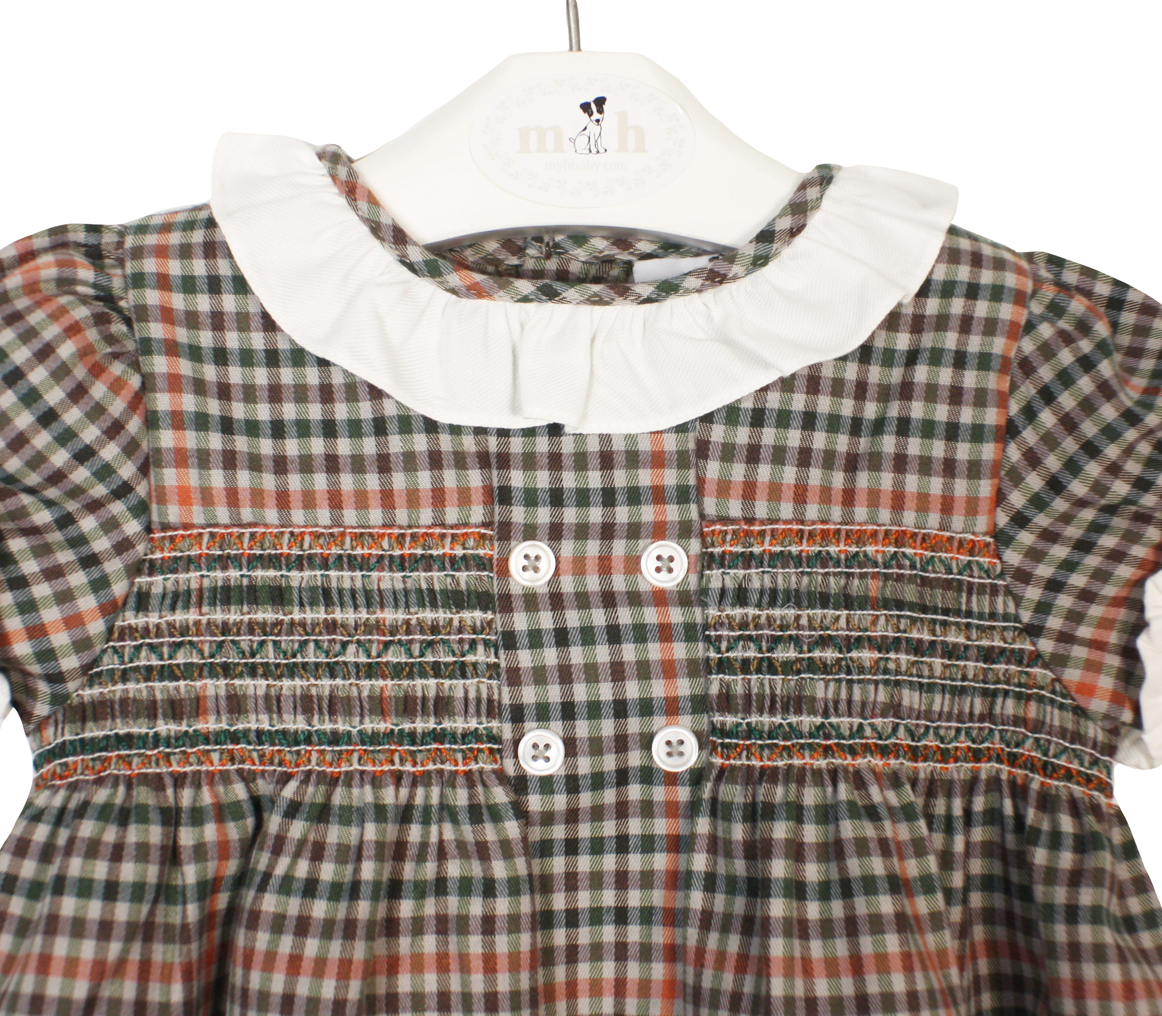 Short sleeved dress in harris plaid. With bloomers up to 24 months. Made in Spain by m&h