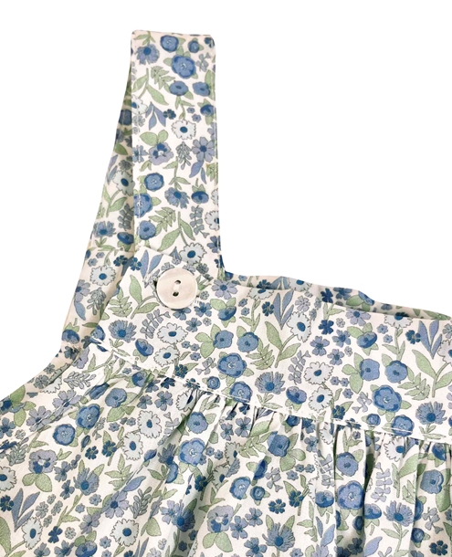 Baby spring romper, with blue and green flowers