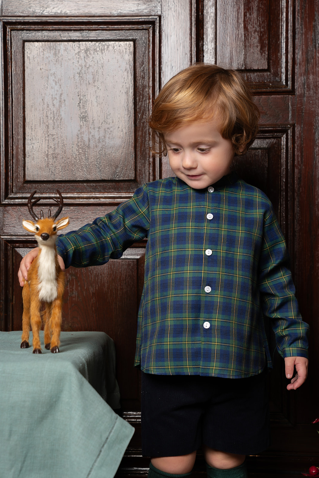 Christmas shirt in tartan print with long sleeve and mao neck line.