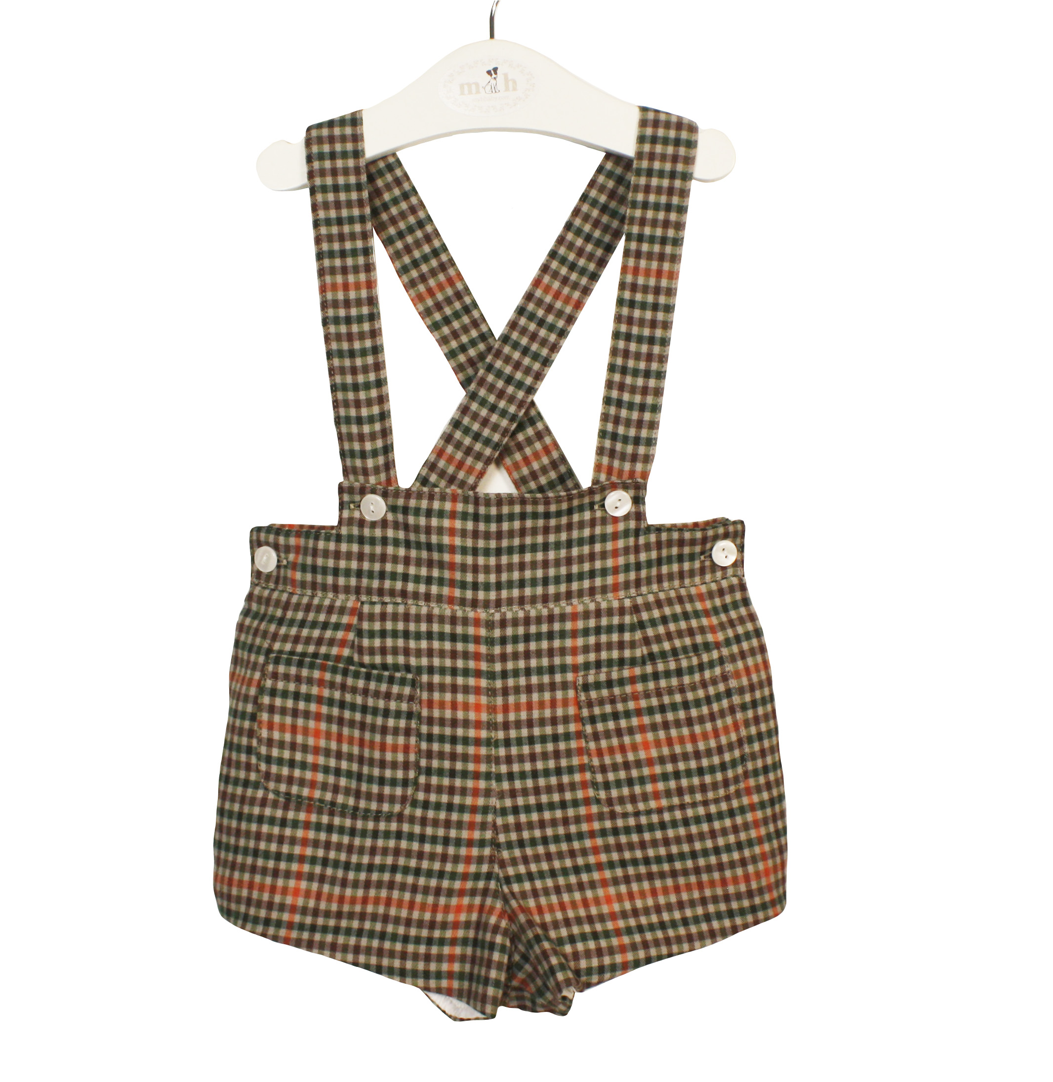 Bermuda tirantes cuadro Harris. Bolsillos al frente. Hecho en España por m&h