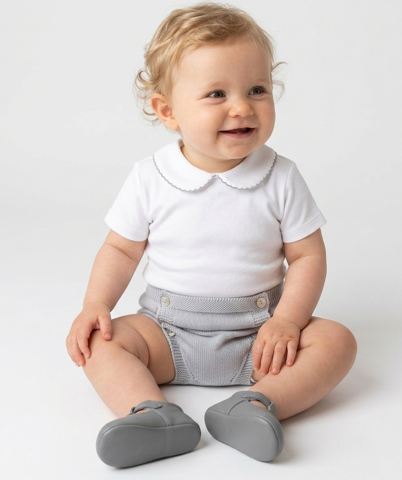 Body manga corta piqué cuello bebé ribeteado en gris
