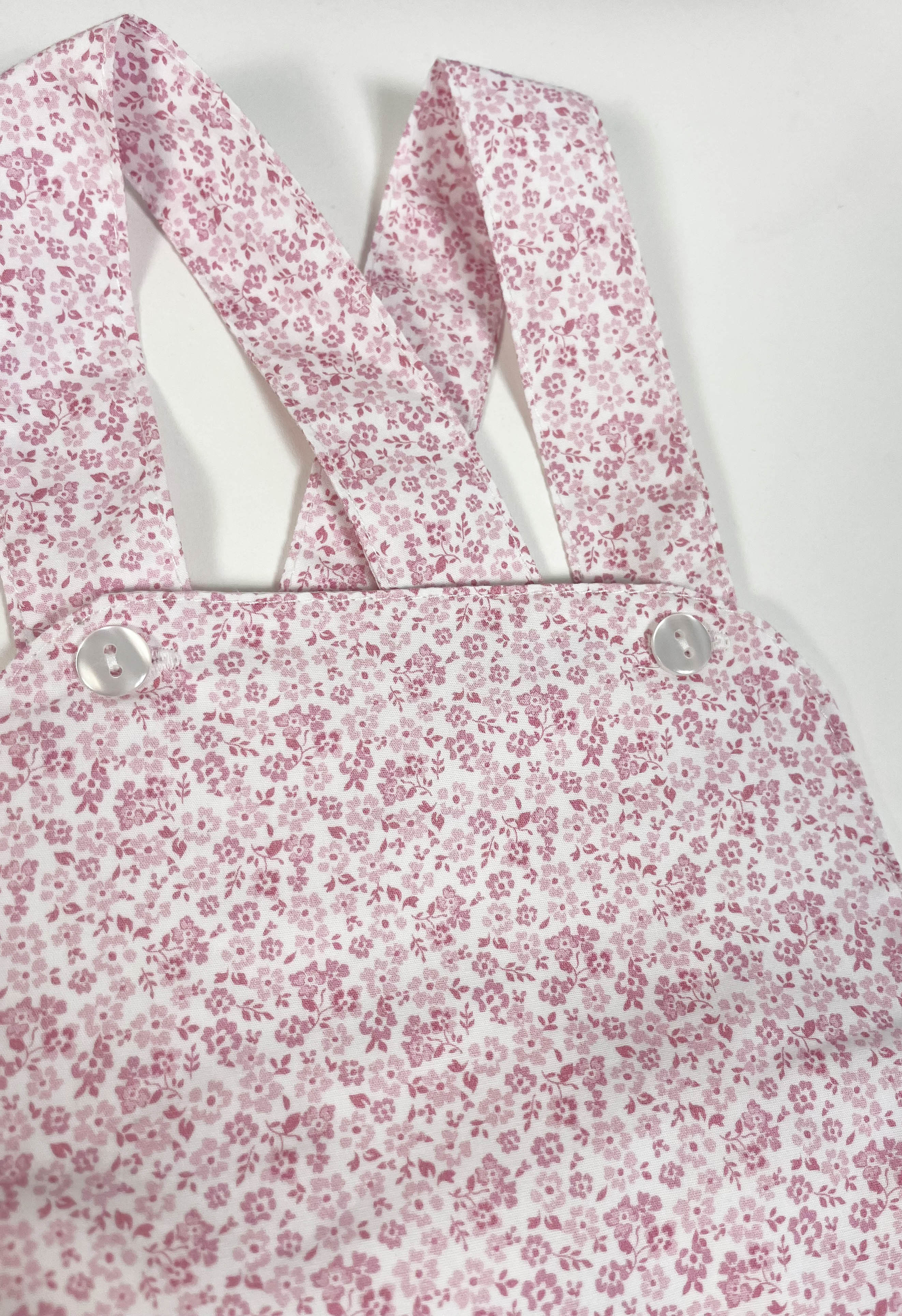 Ranita bebé florecitas rosas. Botones en pecho y laterales. Hecho en España por m&h
