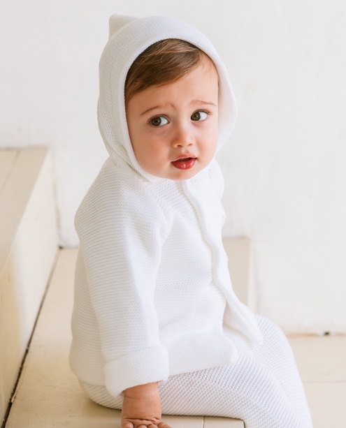 San Francisco punto liso blanco. Dos piezas: polaina y chaquetón con capucha.