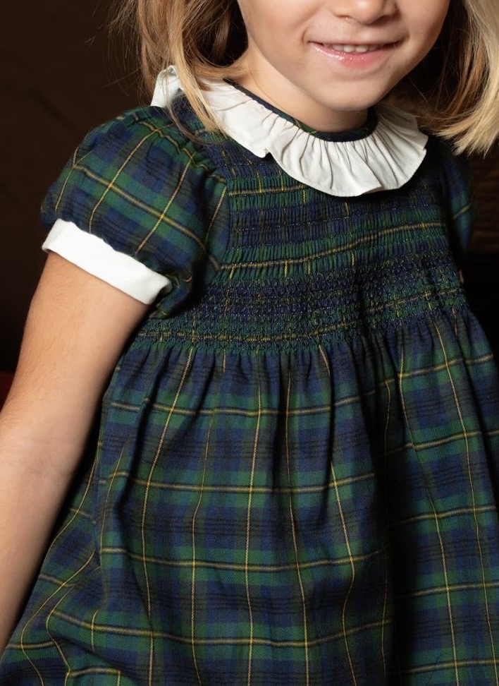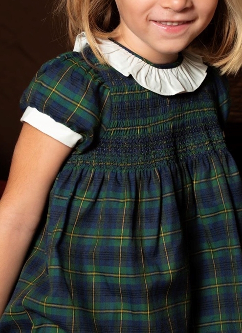 Vestido de navidad Flavia con estampado tartán verde. Hecho en España por m&h. Incluye pololo hasta 2A