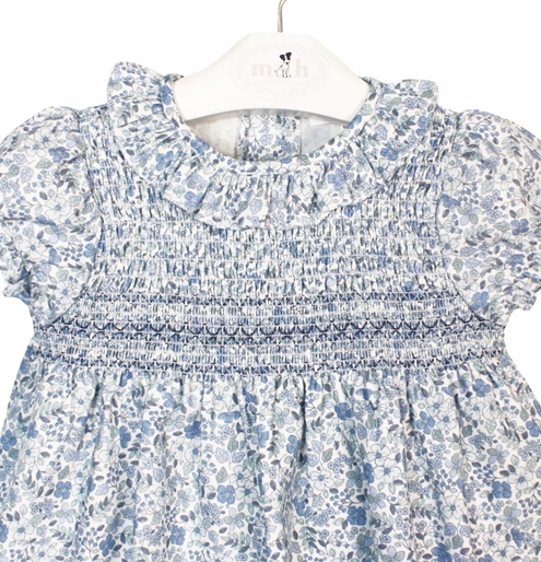 Vestido París flores azules. Incluye pololo a juego hasta los 24 meses. Hecho en España por m&h