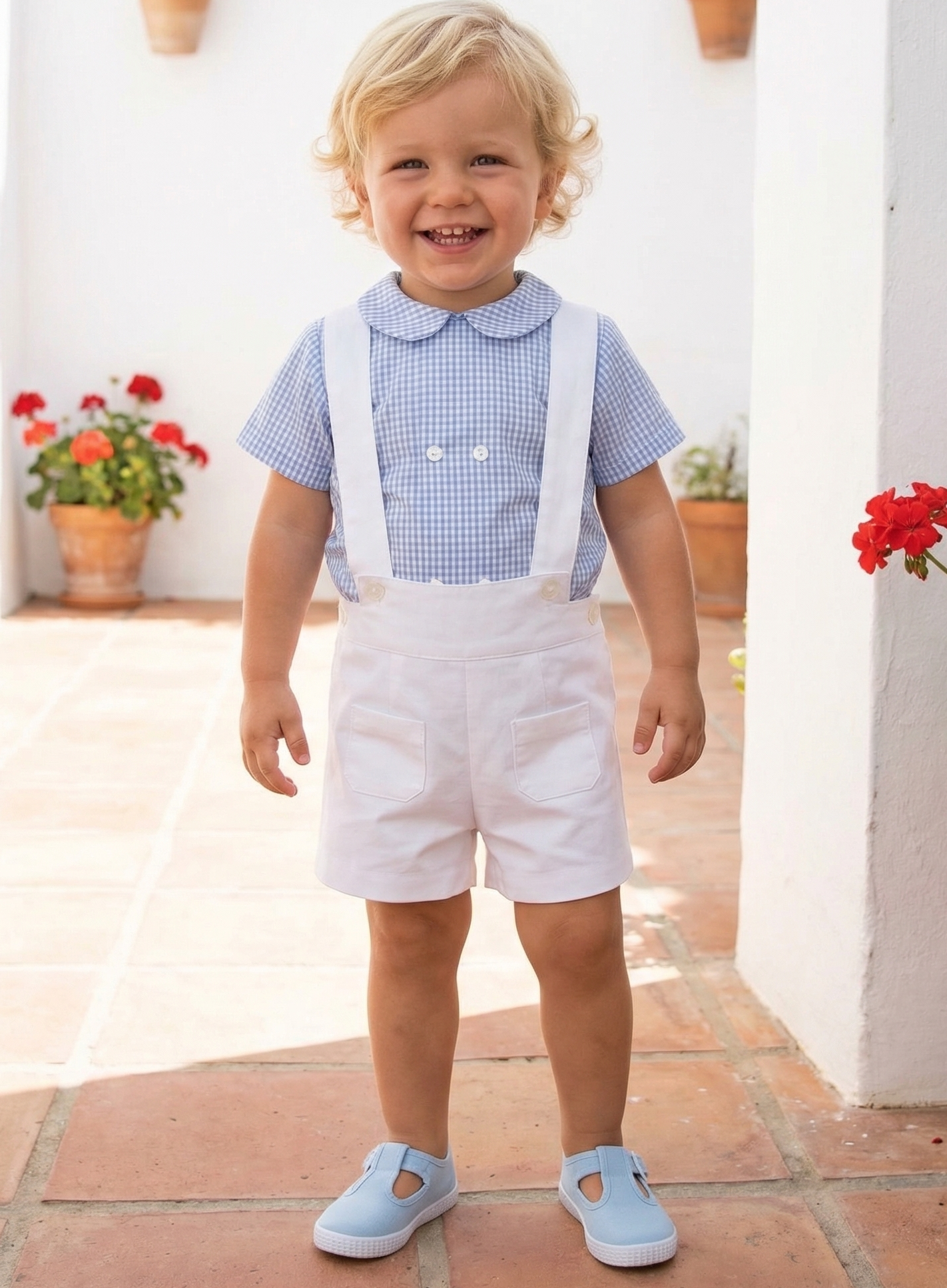 Blue linen blue short with braces