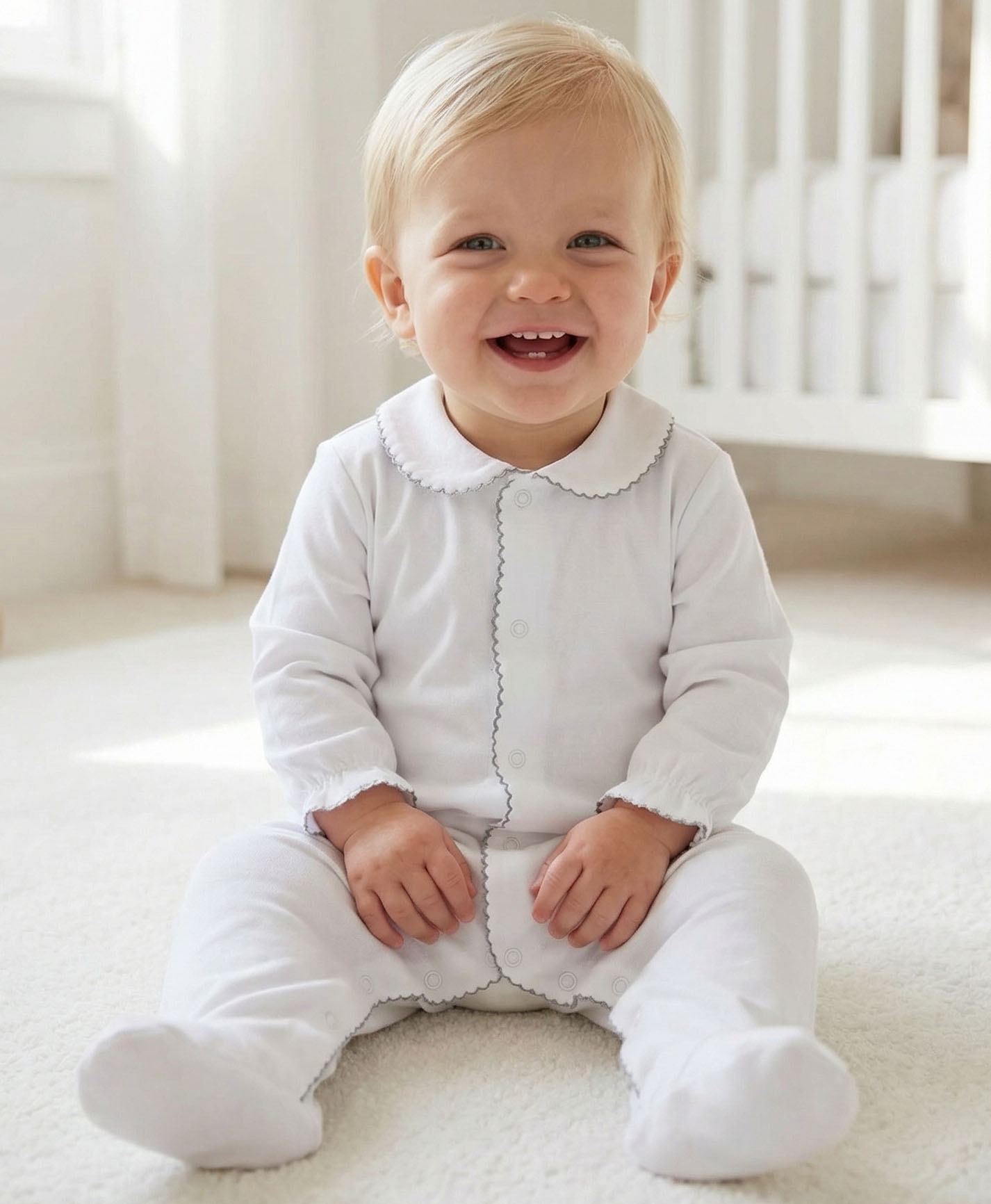 m&h sleep suit white and grey stitch