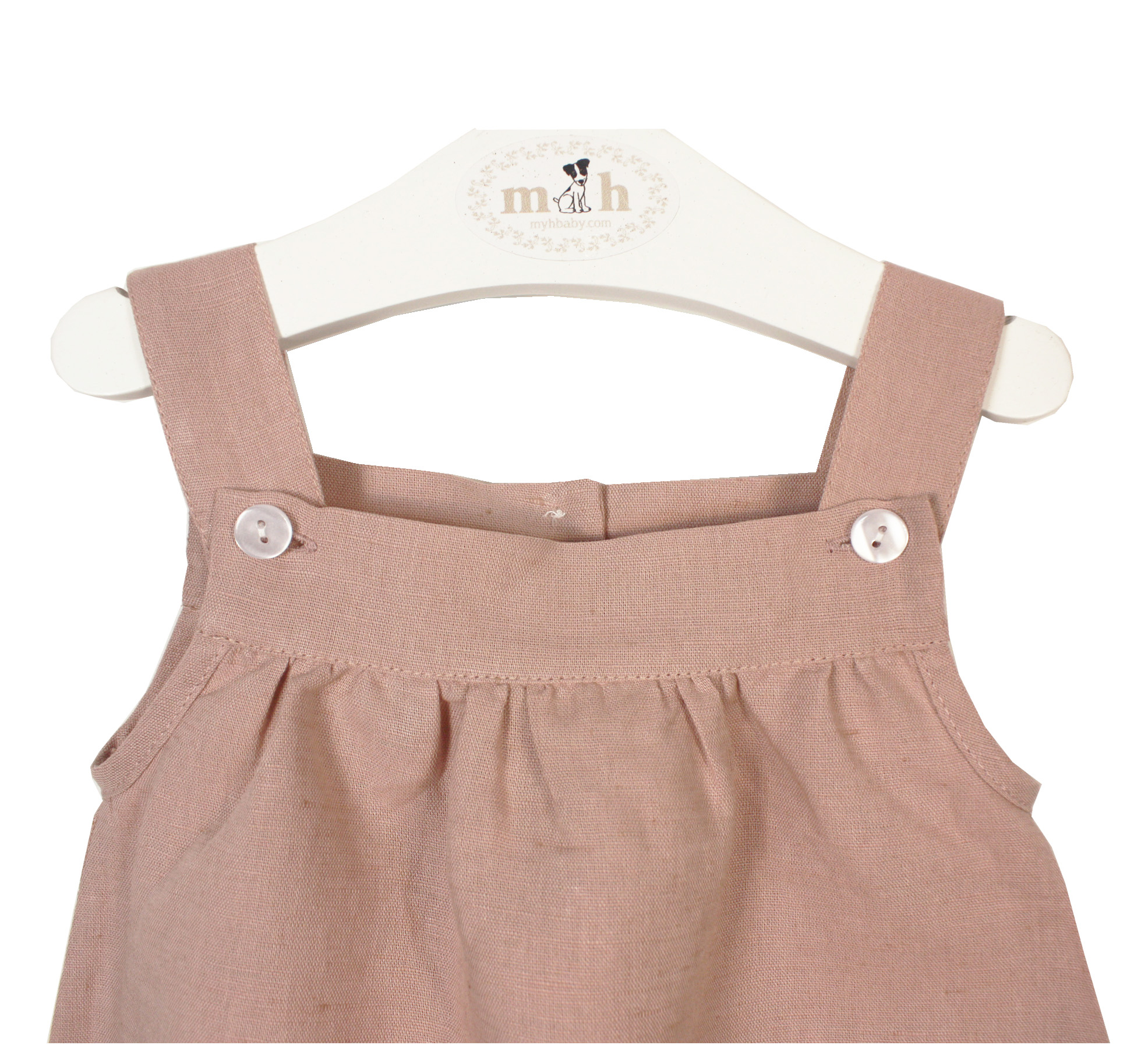 m&h baby romper pastel pink linen cotton