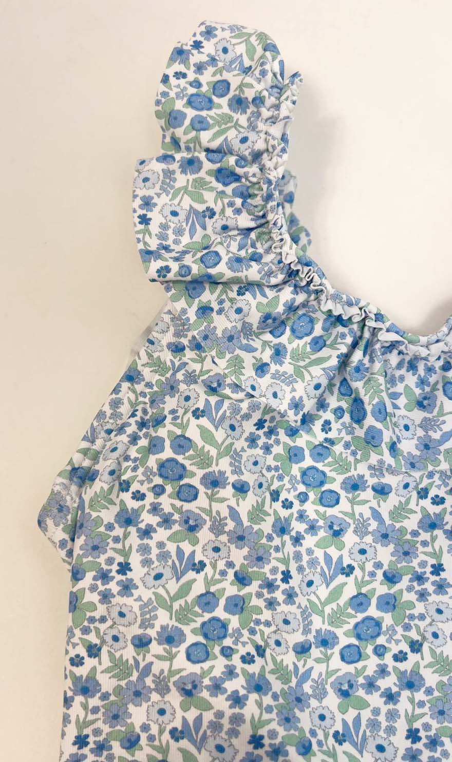 Girl swimsuit green and blue flower print. Made in Spain by m&h