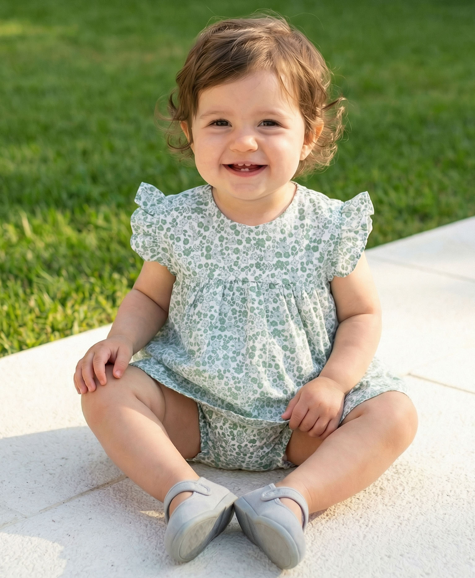 Clara baby dress green flowers