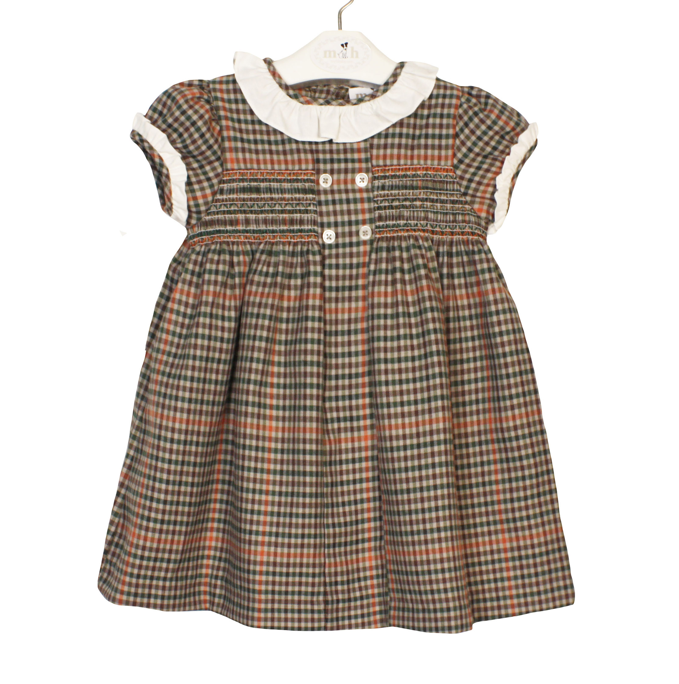Short sleeved dress in harris plaid. With bloomers up to 24 months. Made in Spain by m&h