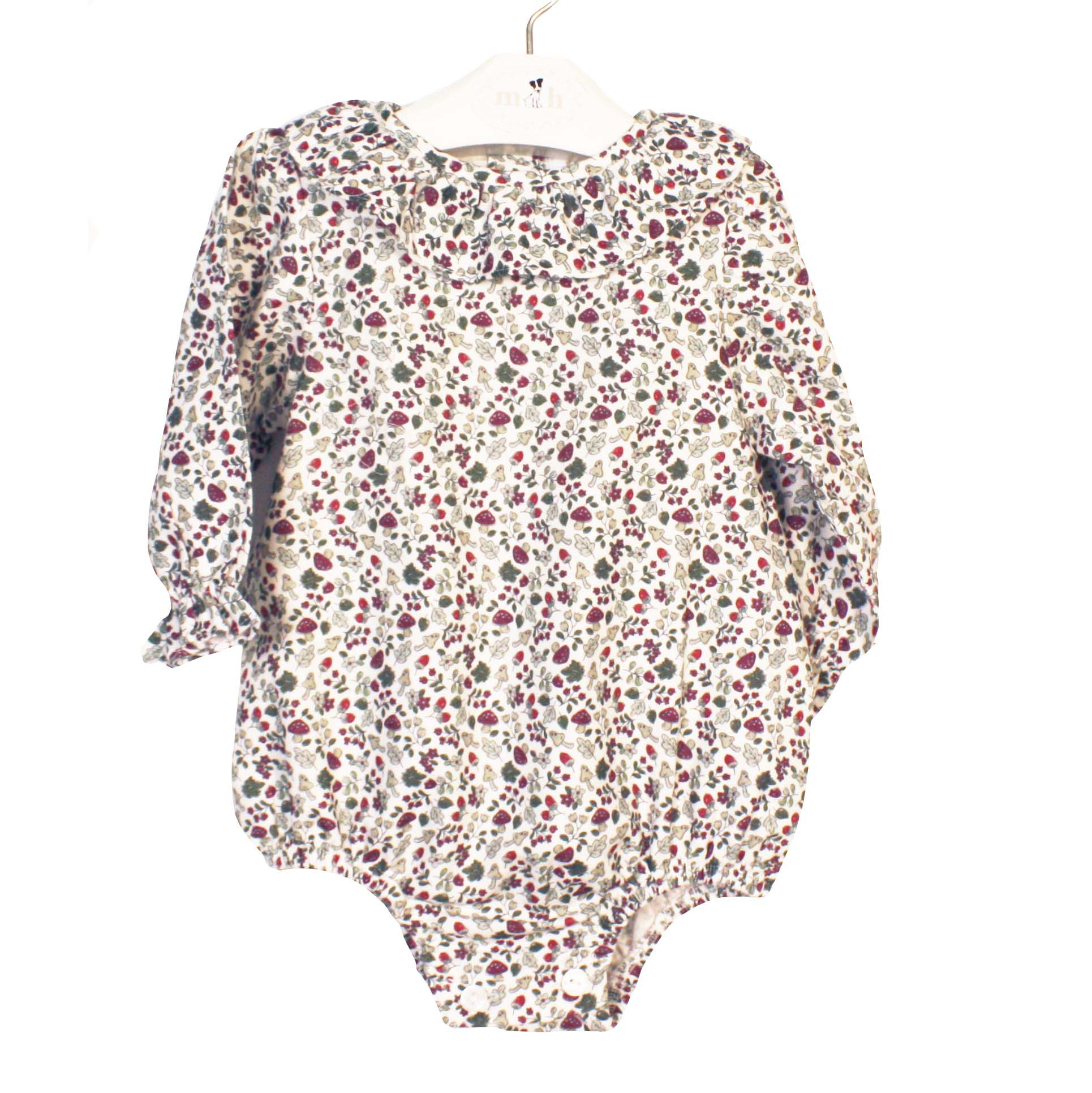 Fall baby blouse with long sleeves and ruffle in the neck line, in mushrooms print.