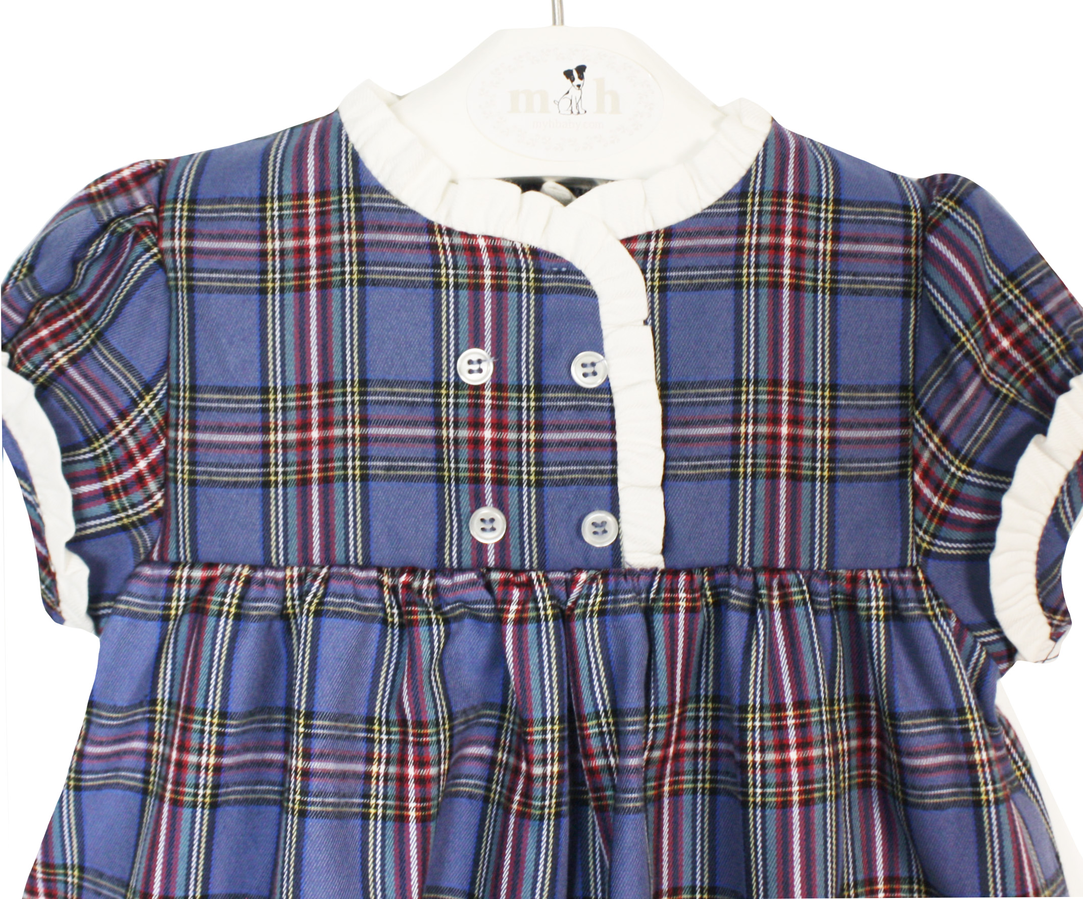 Balmoral dress blue tartan. Diaper cover up to 2Y. Made in Spain by m&h