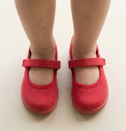 Red toddler canvas mary jane shoes. Velcro closure. Made in Spain