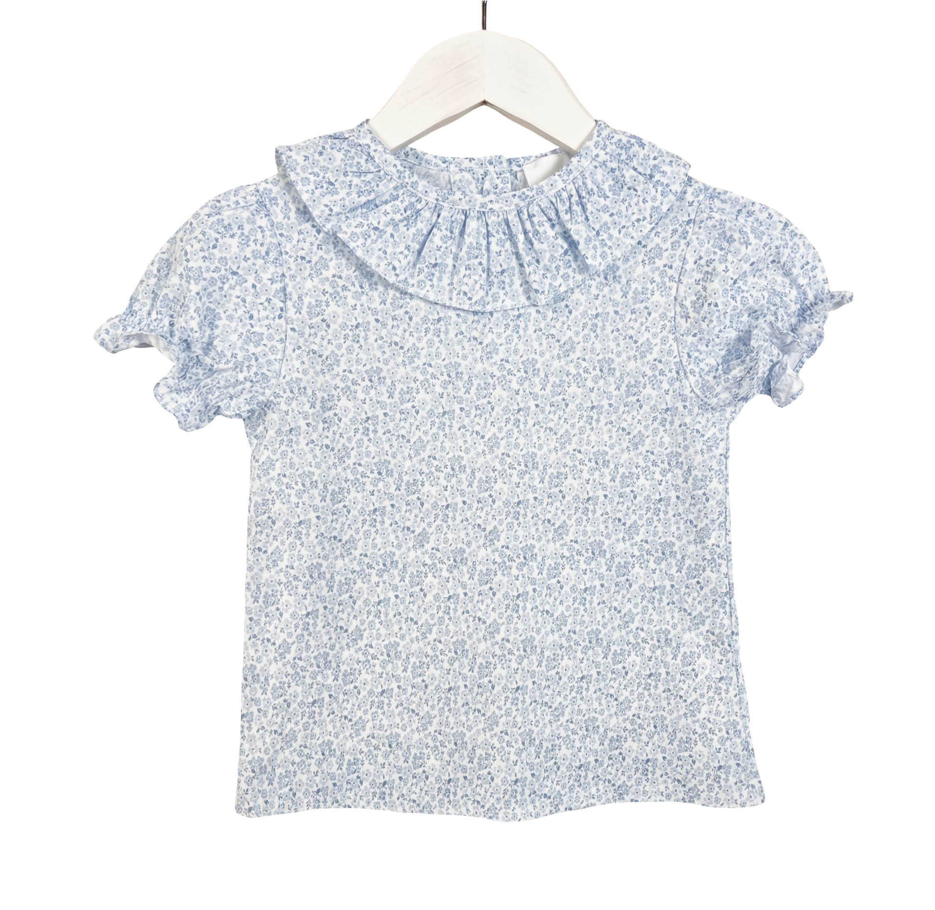Conjunto bebé blusa y cubre flores azules