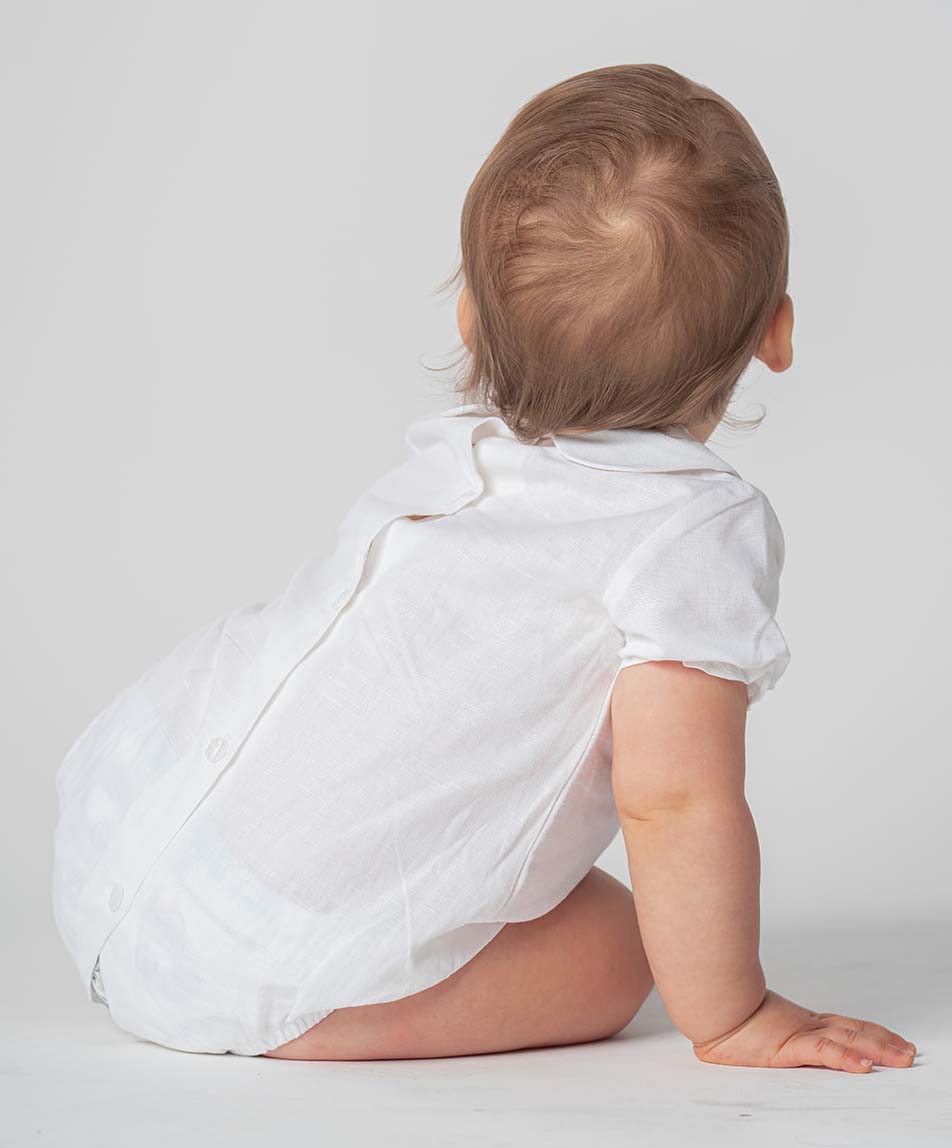 Badana de bebé modelo mercedita color azul. Cierre botón. Hecho en España por m&h