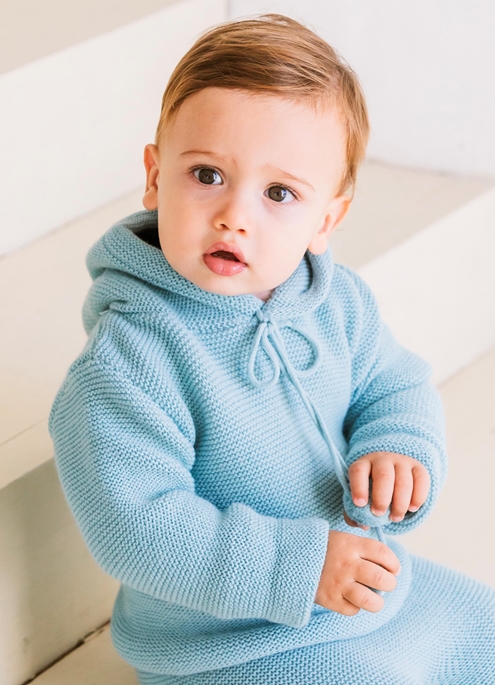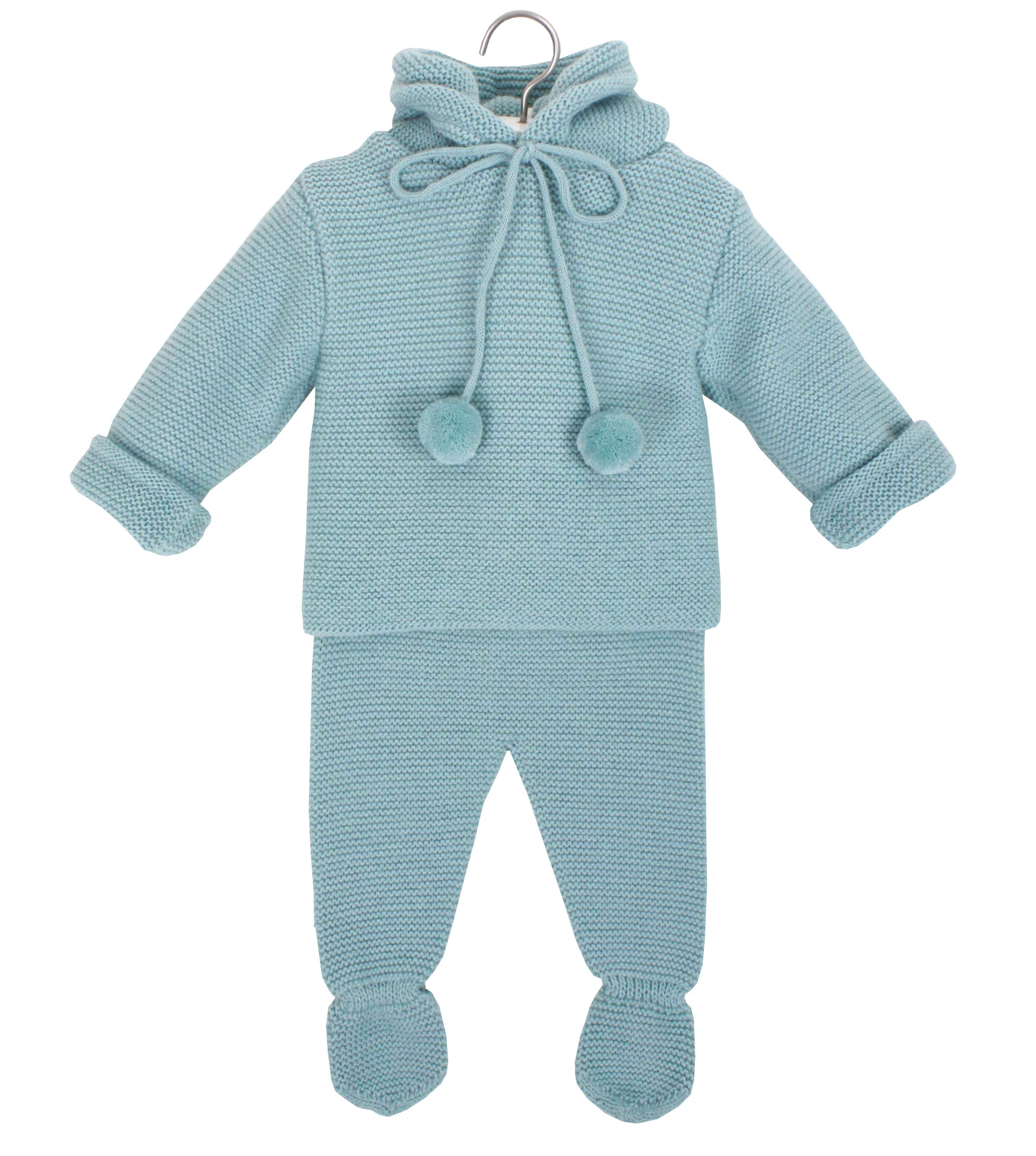 San Francisco verde con pompón. Dos piezas, chaquetón con capucha y polaina a juego.