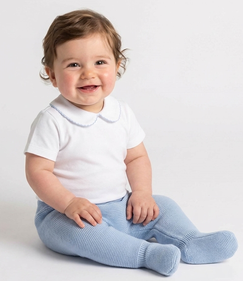 Polaina de punto bobo perlé azul. Fabricada en España por m&h