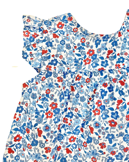 Jesusito Clara estampado rojo y azul. Incluye pololo hasta la talla 24 meses. Hecho en España por m&h